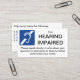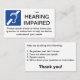 Hearing impairment can be challenging. I began to lose my hearing over 10 years ago, and have struggled more recently. I realise that there are many who suffer. To help, I thought of handing out business cards at restaurants and businesses, so people would better understand my impairment and be better suited to assist me. These are also great if someone is pulled over by police or need help from a fireman or EMS staff. It allows the first responder to better understand my needs and how to help me best follow their instructions.