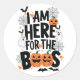 A festive and lively design, perfect for Halloween enthusiasts. The phrase 'I'AM HERE FOR THE BOOS' is written in bold, playful