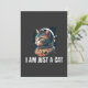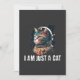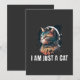 A whimsical design featuring the phrase "I Am Just a Cat" with a cat in a space suit, blending humour, cuteness, and a cosmic vibe in a creative style.