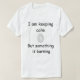 I am keeping calm - but something is burning comic t shirt. Ideal gift for that fireman friend, or the friend who is a chef, cook or for someone who works in a kitchen environment. Suitable for all ages.