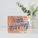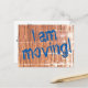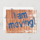 This distressed look new-house postcard design features the message "I am moving!" on the front, and a customisable message on the back. Postcards like this could be used to inform friends and relatives that the sender has moved to a new home.
