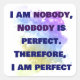 I am nobody, I am perfect. FUNNY and Colourful Square Sticker