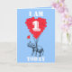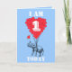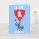 Funny cute vintage elephant animal cartoon illustration and romantic red love heart balloons and pale blue background change the 1st birthday number if required to make a unique modern graphic simple first birthday card for your son or boy child.