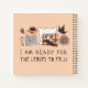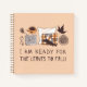 This cosy fall design perfectly encapsulates the anticipation and warmth of the autumn season with the phrase "I Am Ready For The Leaves To Fall!" The text is written in a playful, hand-drawn font that complements the inviting, homey illustrations above it. The design features a collection of comforting fall essentials: a steaming cup of coffee, an open book, a pair of glasses, a fluffy pillow, a plaid blanket, and a fallen leaf, all arranged in a charming, relaxed composition. The soft, warm colour palette, dominated by shades of beige, brown, and orange, evokes the peaceful and nostalgic feelings of autumn.