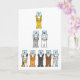 Three rows of cartoon cats standing up on their back paws. The cats are holding up pastel blue coloured cards which have letters on that spell out' I am sorry'.