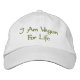 I Am Vegan For Life. Saying in Green Text. Slogan Embroidered Hat