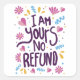 Lovely and cool design with the Quote "I am Yours, No Refund". Show your love and affection to your boyfriend, girlfriend, husband, wife dad, mom, granddad, grandma in a funny and romantic way.