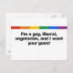 I'm a gay liberal vegaterian and I want your Postcard