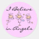 Three adorable stick figure angels with halos and text that reads "I Believe in Angels" on stickers with a pink background, perfect for anyone who loves and believes in angels!