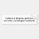 Bumper sticker with the statement "I believe in dragons, good men and other mythological creatures."