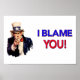 A retro World War II poster re-worked for the modern era. Uncle Sam points his finger to say I Blame YOU! Vintage charm, and a little humour for those of us who always seem to be in trouble.