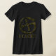 Generic Geocaching logo above, I CACHE. Grungy and texture-y. I think this design works better on dark colours than it looks in the picture. Watch out for ladies shirt sizes -- aim for larger!
