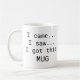 "I Came... I Saw...I Got This MUG" is a funny saying for those who love to travel across the world or not far from home and say "I got this mug". Great for friends and family. Message on left and right side of the mug. 11 oz. White with black lettering.