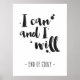 Inspirational poster displaying the phrase "I can and I will - end of story" in black brush script with an organic ink texture to achieve an authentic, hand lettered look. Designed to look great on all portrait orientated poster sizes. Please do check if the image needs to be repositioned or resized after changing the poster size.