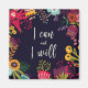 "I can and I will" in white script letters + a frame of bold, vivid flowers. Positive thinking and determination will get you places. Make your own good luck with this statement of bravery and intent.