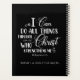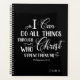 A black planner with a white "I can do all things through Christ who strengthens me" Philippians 4:13 bible verse. This is a planner that can be personalised on the backside with a name or other words > just delete that option if not using it.