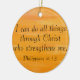 Words of faith to live by each and every day. Hang this ornament anywhere you need a reminder of these great words of faith. Ornaments aren't just for Christmas anymore. Makes a great gift too!