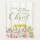 Planner with familiar scripture verse from Phillippians 4:13, "I can do all things through Christ" in a modern, typographic style with a light barnwood background and yellow and pink flowers along the bottom. Designed by Simply Scripture; floral art from Design Cuts.