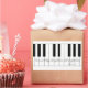 Piano keys with Inspirational scripture from Philippians 4.13 KJV Bible Verse I can do all things through Christ which strengtheneth me in deep grey script font with vintage antique floral edging with piano keys.