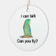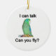 A spectacled parrotlet asks the question, "I can talk, can you fly?"