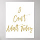 I can't adult today funny saying Poster in Faux Gold Foil Typography and White Background.