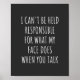 i can't be held responsible for what my face does poster