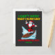 The illustration on the design has Santa surfing on a wooden surfboard giving a thumbs up. The text says I can't deny that I sure like Christmas in July. The hashtag says stoked.