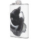 The flask itself is fine. It’s a cheap flask, obviously bought in bulk, however am prepared to overlook that. Given that it is a personalized item, I would have liked to have seen gift boxing instead of the generic packaging. Terrible printing, and/or quality. It’s a cheap, tacky vinyl. It is not cut straight and is also applied in a way that it is overhanging the bottom, causing the glue to catch on items and it will eventually roll and tear, damaging the wrap.