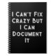 I can't fix crazy but I can document it funny notebook for HR or others. Black and White