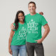 Green tee with white lettering, I can't keep calm i'm Irish! Fun shirt for Irish lass on St. Patrick's Day. Share your inability to contain your emotions and keep calm with this funny t-shirt, "I can't keep calm i'm Irish", or customise with any saying. Graphic crown element with green "keep calm " in big bold block type. Create your own fun witty can't keep calm t-shirt easily.