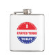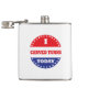 The flask itself is fine. It’s a cheap flask, obviously bought in bulk, however am prepared to overlook that. Given that it is a personalized item, I would have liked to have seen gift boxing instead of the generic packaging. Terrible printing, and/or quality. It’s a cheap, tacky vinyl. It is not cut straight and is also applied in a way that it is overhanging the bottom, causing the glue to catch on items and it will eventually roll and tear, damaging the wrap.