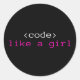 I code like a girl classic round sticker