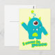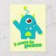 Cute graphic alien postcard I come in peace by Sarah Trett. Perfect to send to warn you are visiting but in peace of course.
