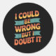 I Could Be Wrong But I Doubt It Sarcastic Men Wome Classic Round Sticker