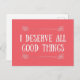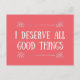 I DESERVE ALL THE THINGS POSTCARD