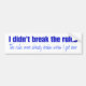 I didn't break the rules bumper sticker