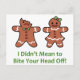 Gingerbread couple with "I didn't mean to bite your head off!" Husbands can relate to this!