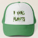 I Dig Plants funny gardener saying in green messy letters, with lots of dirt around the edges. A funny gardening slogan by theGardenPages.com