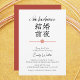 Designed with a clean modern layout, this invite features graceful kanji characters for “wedding eve,” a soft red mizuhiki-inspired floral bow, and delicate calligraphy that says “I do barbecue.” It’s perfect for couples who love Japanese aesthetics but want to keep things minimalist and meaningful.