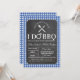 Chalkboard I DO BBQ party invite with blue check. Perfect for an engagement, couples shower or a stock the bar party, change the text to suit your party.