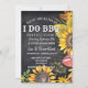 Rustic country, chalkboard and sunflowers couples shower engagement BBQ invitations- Trendy, vintage look, chalkboard background. Right side and bottom bordered with rustic watercolor floral sunflowers, cattails, and leaves in earthy yellows, browns, greens, and a touch of red. Reads 'Please Join Us for an I DO BBQ Couples Shower' in western style lettering. Party details, including RSVP information and store registry, are below. Back has coordinating solid yellow background, which may be changed to any shade. Note: All images are printed. Use the Customise It button to change anything - font styles, sizes, colours, or placement. Elegant country western invites for summer or fall couples shower, outdoor rustic engagement party, barn weddings, garden wedding theme, and western or vintage wedding themes. We have more couples BBQ invitations and rustic party decor in our Zazzle.com/angela65* shop.