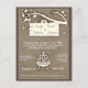 A sweet, simple romantic I do BBQ engagement invitation with a the words "I do BBQ in logs and two lovebirds on top of a sign.Design by Amelia Carrie.