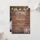 Pretty string lights and mason jars decorate your special engagement party celebration details set in elegant typography on a rustic wood background. The reverse features your special photo. Designed by Thisisnotme©