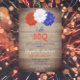 I do BBQ featuring patriotic red, white and blue florals against a rustic wood background