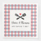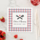 The perfect custom decor accent for an I Do BBQ engagement party or rehearsal dinner this napkin has the couple's monogram among grilling tools on a cheerful red and blue picnic blanket plaid pattern.