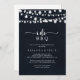 This "I Do" BBQ rustic string lights engagement party invitation is perfect for a modern engagement party, rehearsal dinner, couples shower, after party or any wedding event. The design features beautiful hand-painted string lights in a dark blue background.