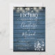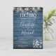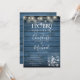 Pretty string lights and mason jars decorate your special engagement party celebration details set in elegant typography on a blue rustic wood background. Designed by Thisisnotme©