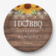 I Do BBQ Sunflower Rustic Wood Engagement Party Paper Plate