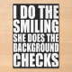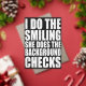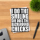 Show off your fun relationship dynamic with this bold quote that says “I Do The Smiling, She Does The Background Checks.” This funny women’s t-shirt is perfect for girlfriends and wives who love to protect their partners and secretly investigate new people. Great gift idea for anniversaries, Valentine’s Day, dating nights, or any woman with a playful sense of humor.