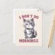 Start your day with a touch of humour and feline charm with this 'I Don’t Do Mornings' postcard! Featuring a sleepy grey cat holding a cup of coffee, this adorable artwork is perfect for cat lovers and coffee enthusiasts alike. A delightful gift for anyone who isn’t a morning person, this design adds a playful twist to your everyday routine.
